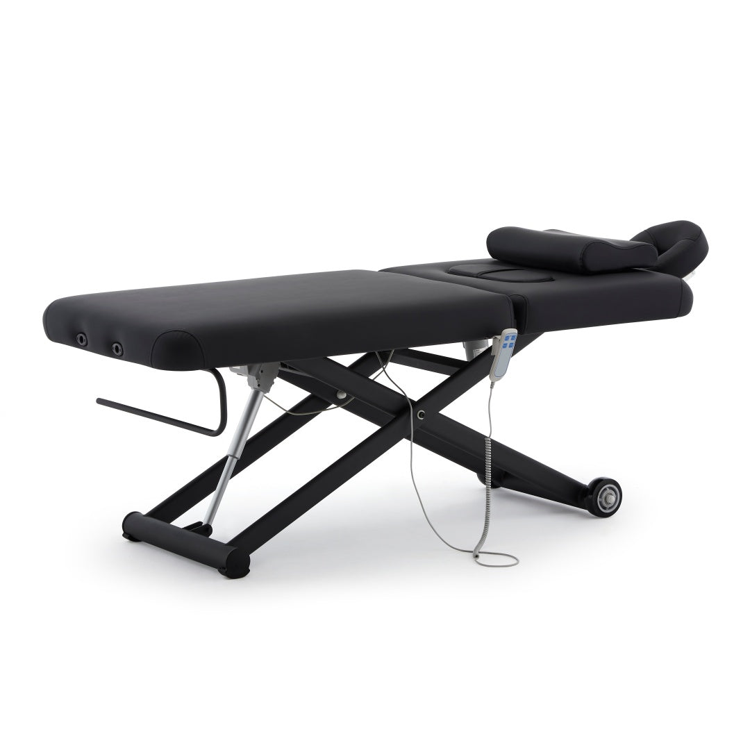 Two powerful electric motors allow effortless adjustment of height and backrest angle with a user-friendly remote control—tailor each session to your client’s needs with precision.