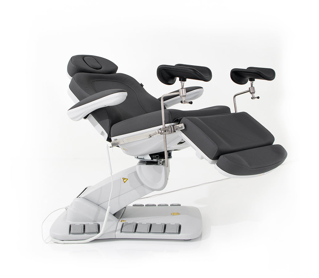 Sa conception comprend des appuis-tête extensibles, des accoudoirs amovibles et une rotation réglable à 240° , offrant une expérience fluide tant pour les praticiens que pour les patients. Les barrières latérales intégrées avec étriers amovibles en acier inoxydable de qualité chirurgicale le rendent parfait pour les procédures médicales. De plus, la télécommande manuelle permet des réglages rapides, tandis que le bouton de réinitialisation ramène rapidement le fauteuil en position assise, minimisant ainsi les distractions pour le personnel médical ou les esthéticiennes.