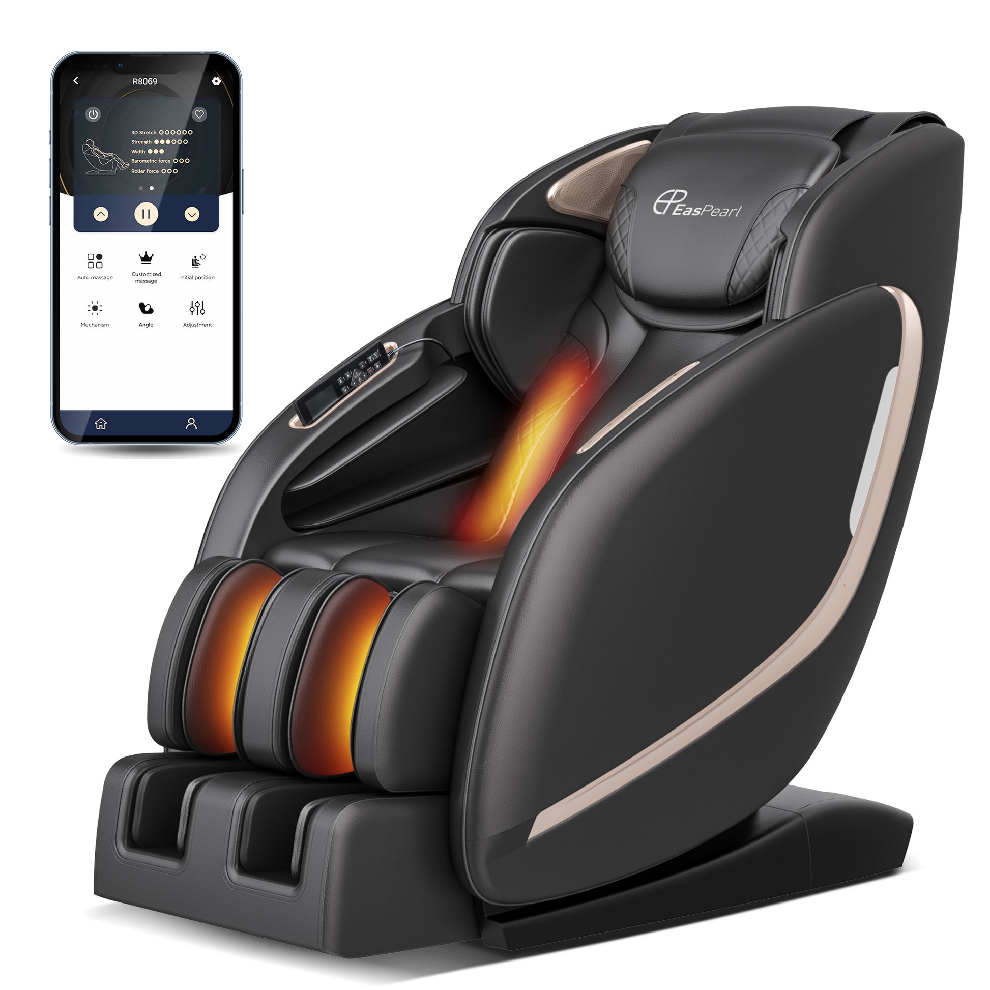 Indulge in the ultimate relaxation experience with the R8069 APP Control Roller Zero-G Massage Chair. This state-of-the-art massage chair combines cutting-edge technology with luxurious comfort, making it the perfect addition to any home or wellness center. Designed to deliver a full-body massage, it features advanced APP control, deep zero-gravity recline, and a range of customizable settings to suit your relaxation needs. With its extended SL track and advanced 3D massage rollers, every inch of your body is pampered with precision. Whether you seek relief from daily stress or a rejuvenating massage, the R8069 is equipped to meet your needs.