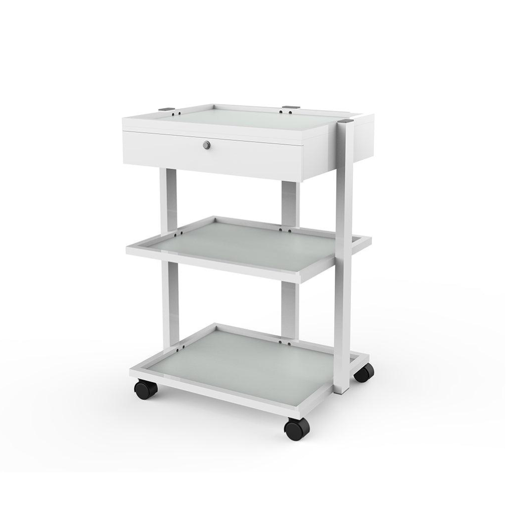 Description: Introduce elegance and functionality to your spa, salon, or medical office with our Sleek Glass Salon Trolley Table. This trolley combines sophisticated design with practicality, featuring attractive glass shelves that add a polished touch to your workspace. The rolling wheels ensure easy mobility, while the locking drawer provides a secure space for your valuables and essentials. It's the perfect solution for keeping your equipment organized and accessible in a stylish manner.